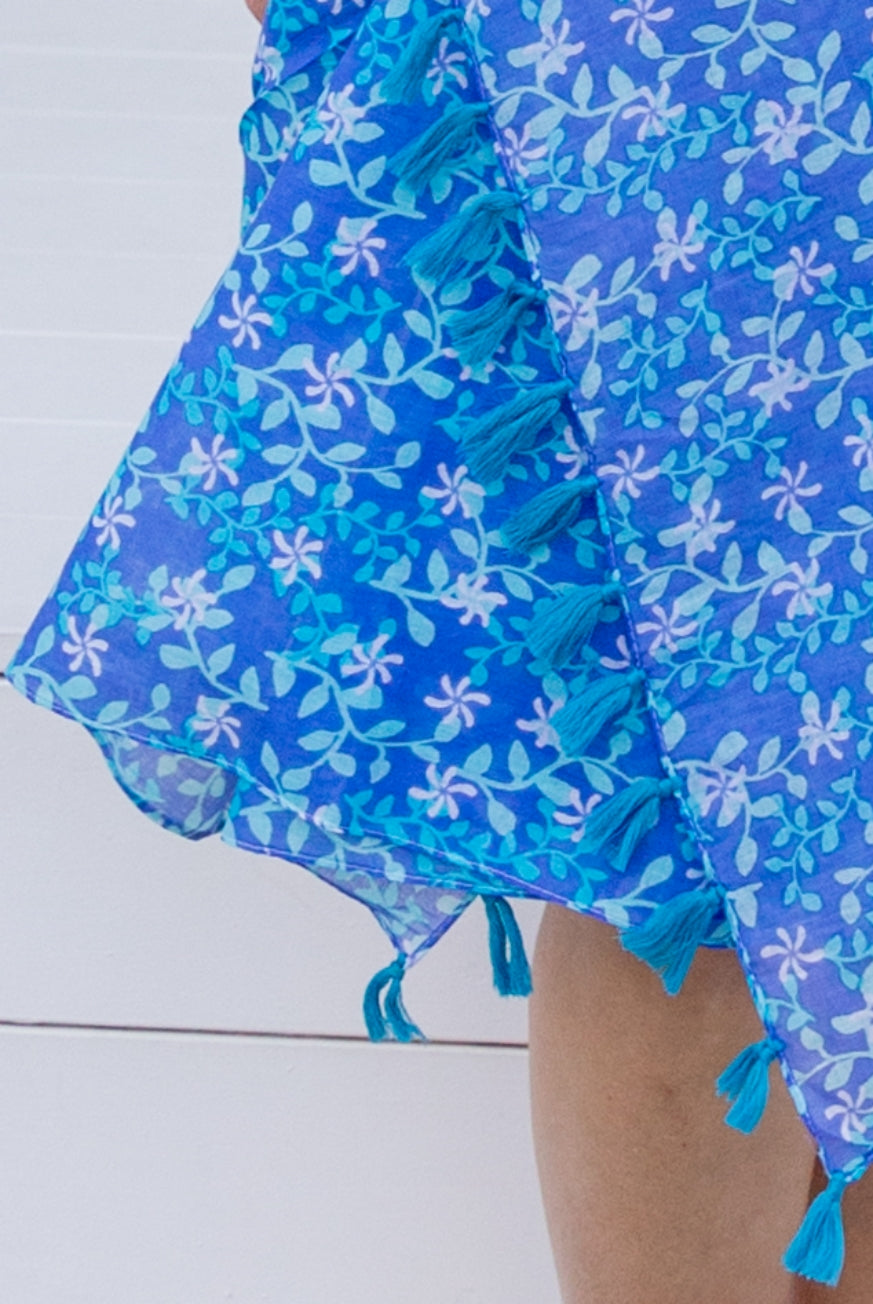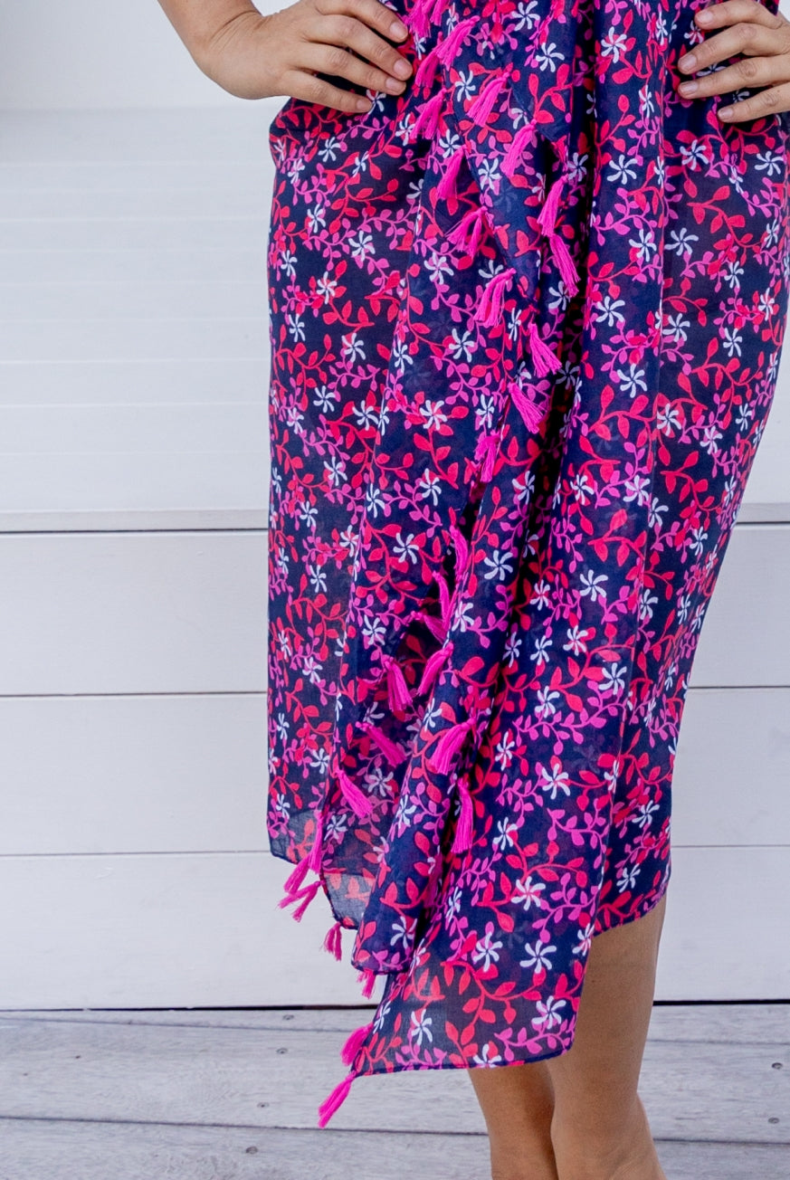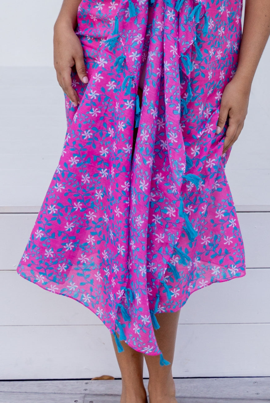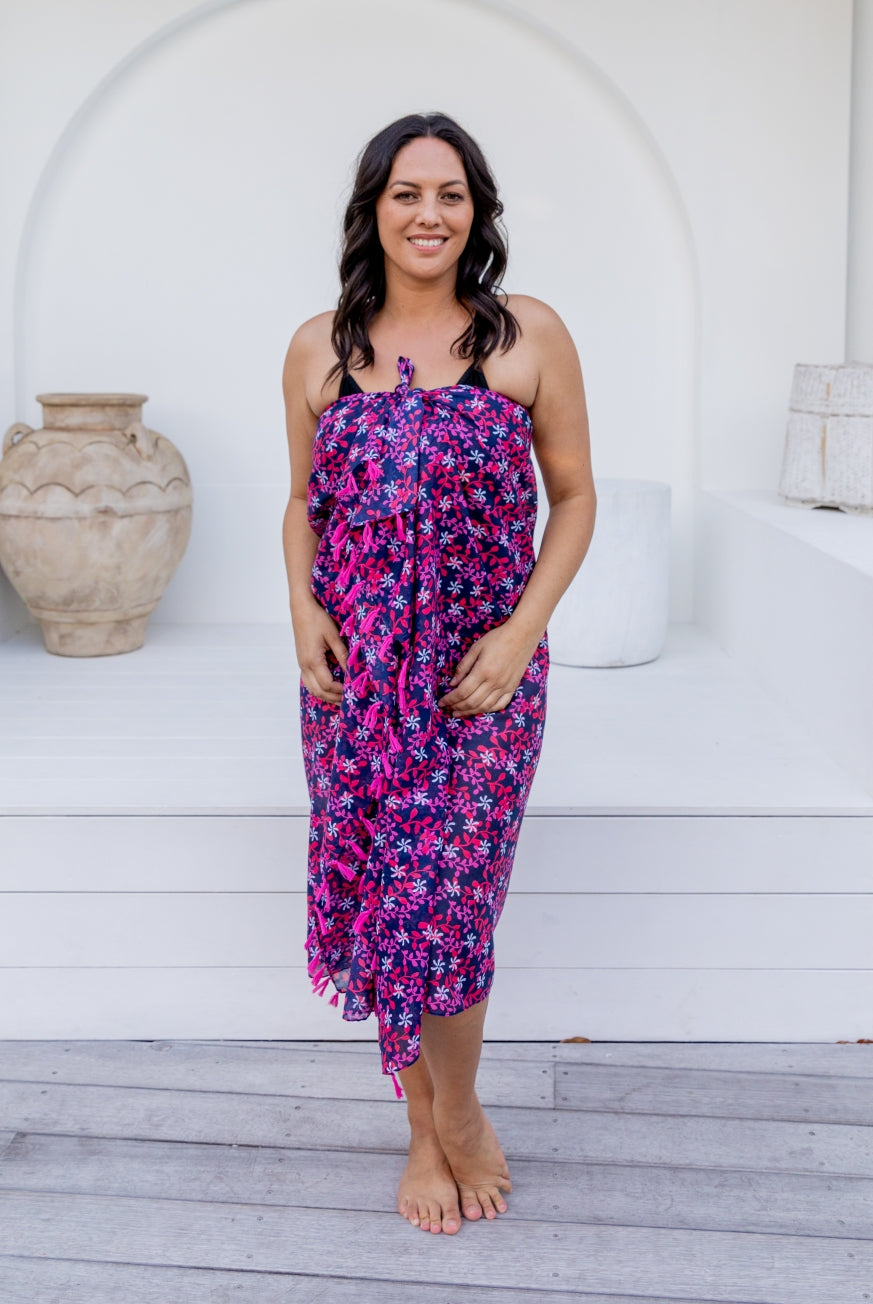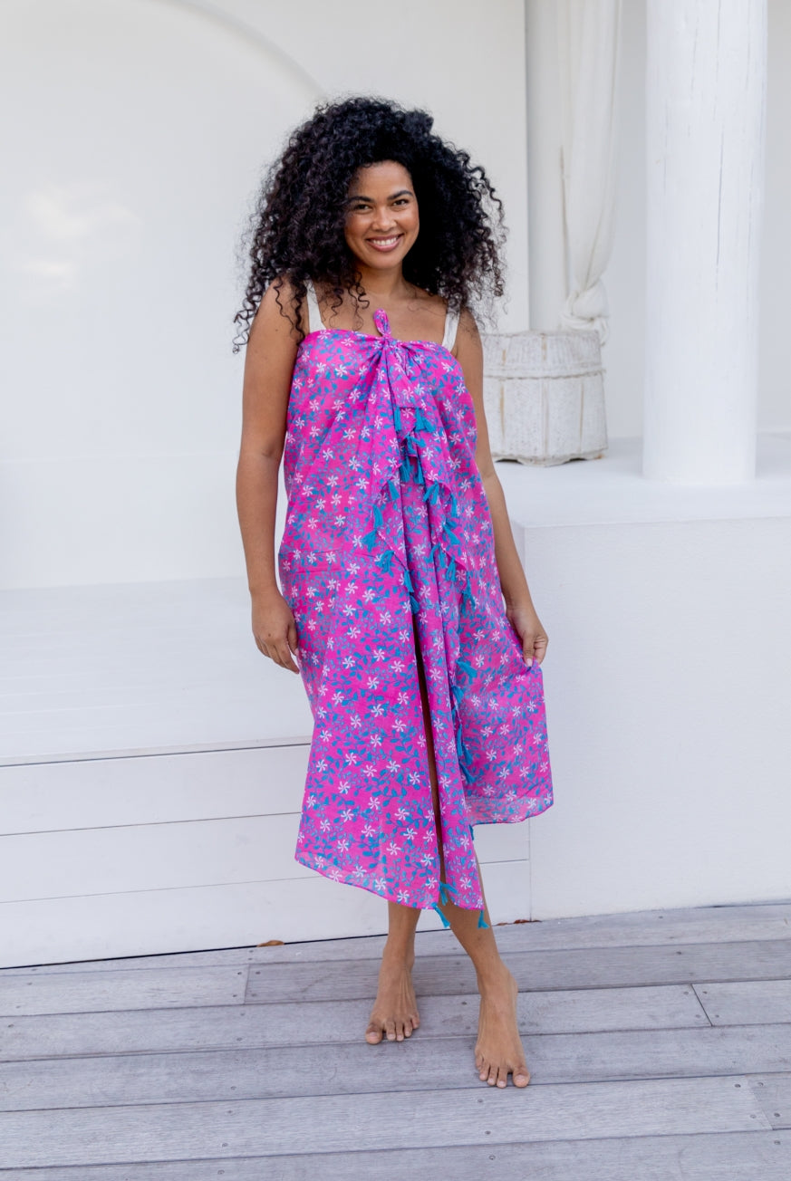 This is our pretty Kauai sarong, featuring delicate tropical flowers and tassels. A sarong is an essential beach accessory. You will be amazed how handy they are. Our sarongs are special because they are made from the softest lightweight pure cotton. (most sarongs are viscose) This is the lightest weight fabric in the collection.