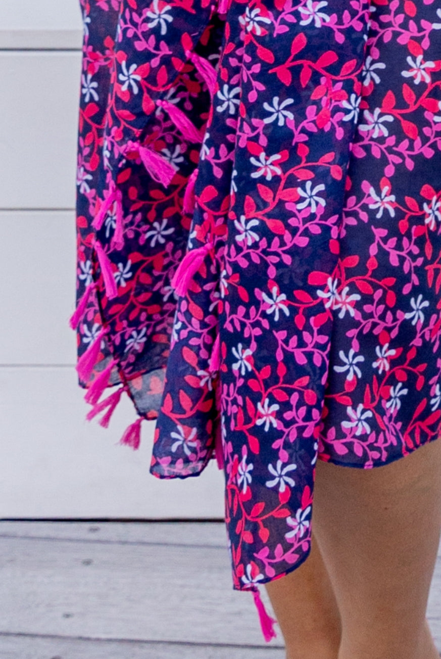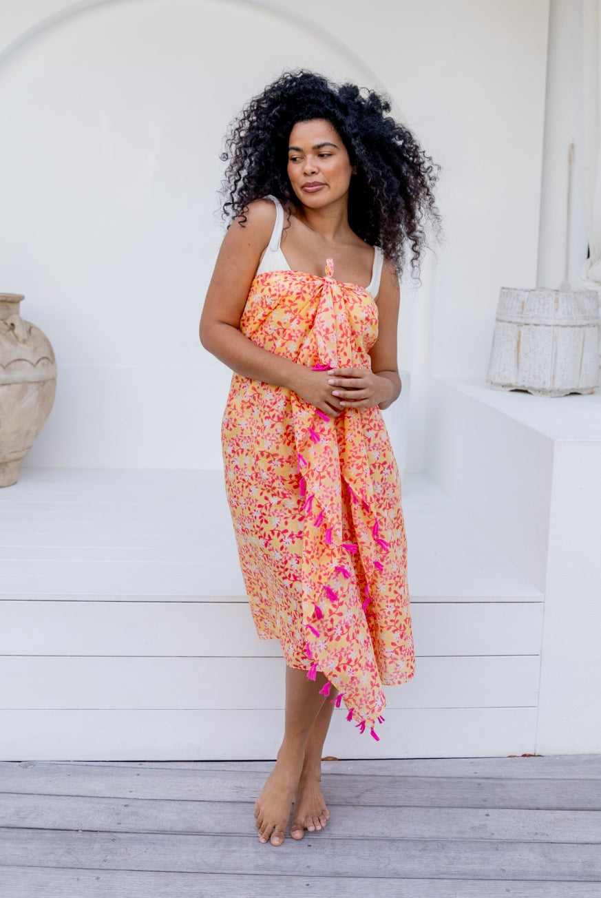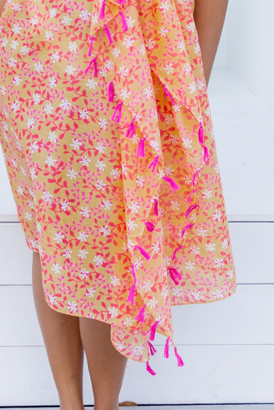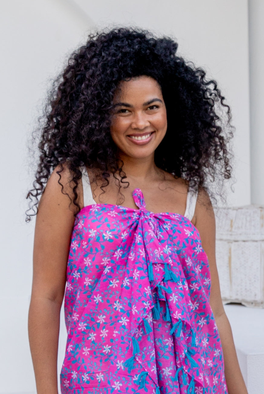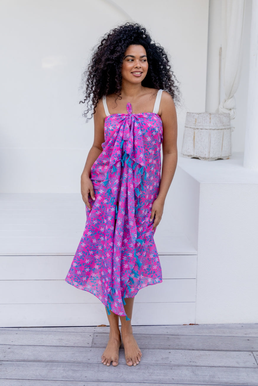 This is our pretty Kauai sarong, featuring delicate tropical flowers and tassels. A sarong is an essential beach accessory. You will be amazed how handy they are. Our sarongs are special because they are made from the softest lightweight pure cotton. (most sarongs are viscose) This is the lightest weight fabric in the collection.